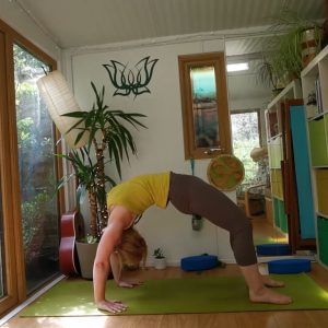 A 90 min modified Ashtanga Primary series with 4 x Sun Salutation A, 2 x Sun salutation B with modifications to stretch out the shoulders, quadriceps and hip flexors in preparation for Urdhva Dhanurasana (upward facing bow).  Back-bend variations and longer-held upward-facing dog are scattered throughout, finishing with shoulder stand and savasana.